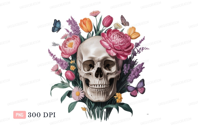 Similar Design Products to Skull surrounded by blooming flowers and butterflies