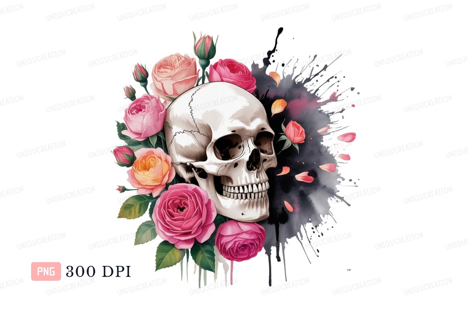 Similar Design Products to Skull surrounded by pink and orange roses flowers