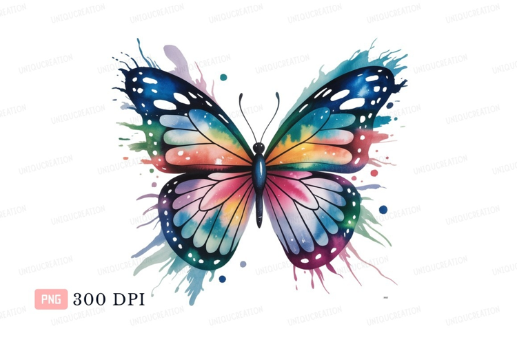 Colorful butterfly watercolor splash insect wings example image 1