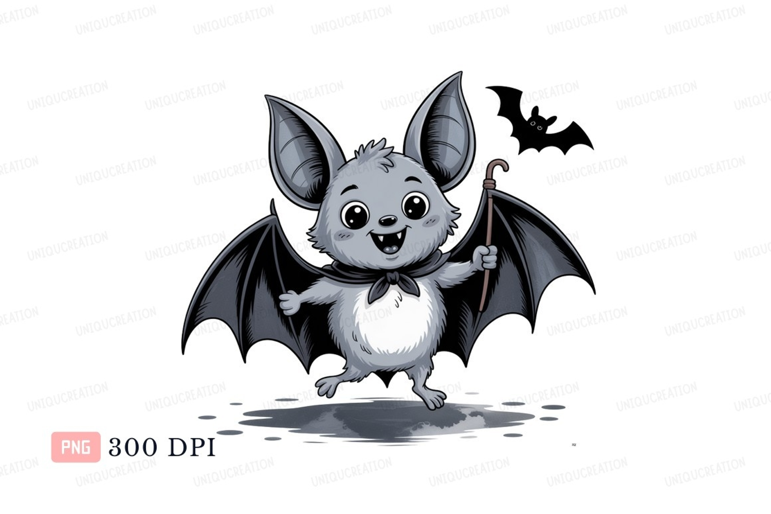 Cartoon Animal Halloween Cute Dark Bat Flying Wings Cape Cane