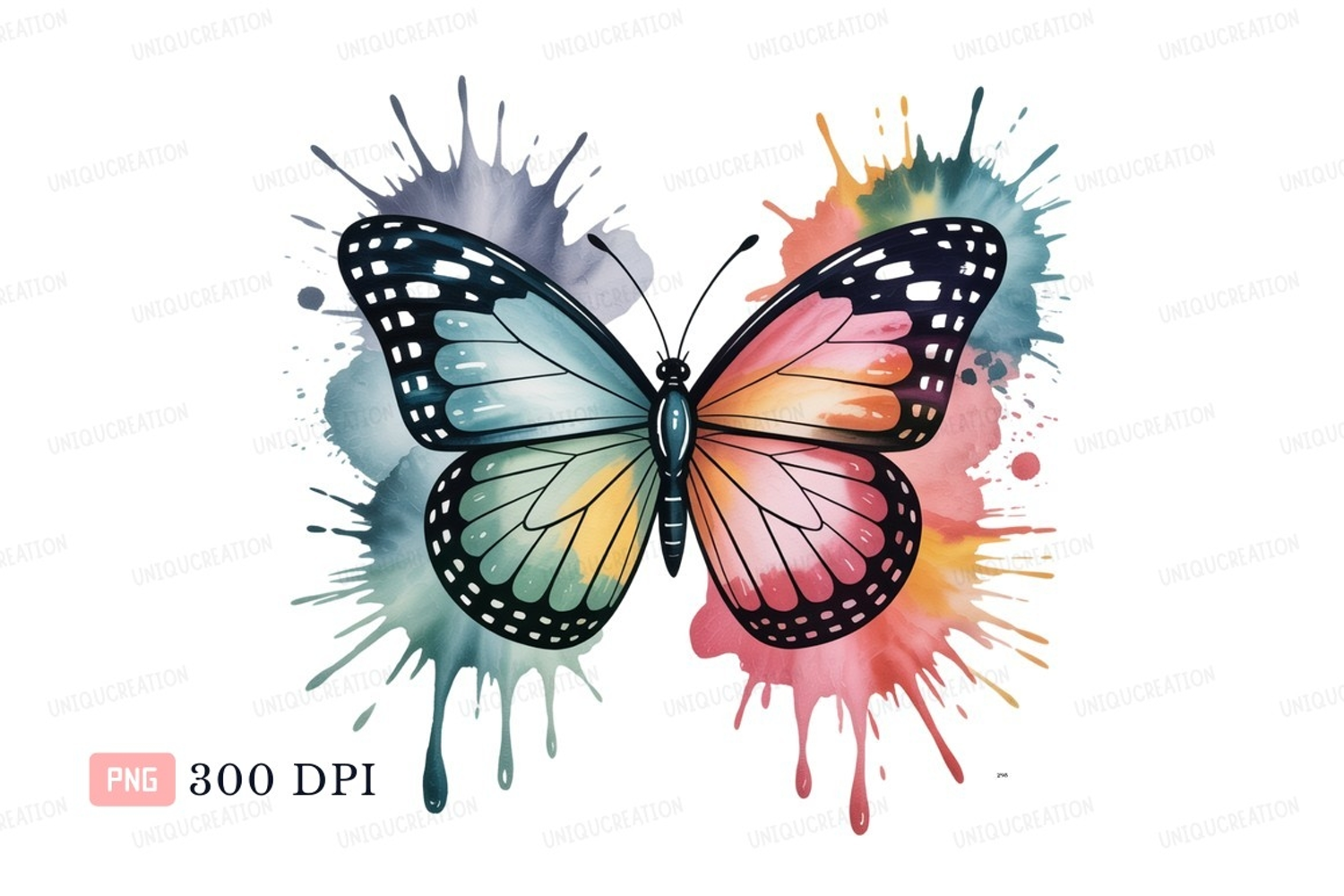 Watercolor Art Design Nature Colorful Splash Abstract Butterfly Insect Vibrant