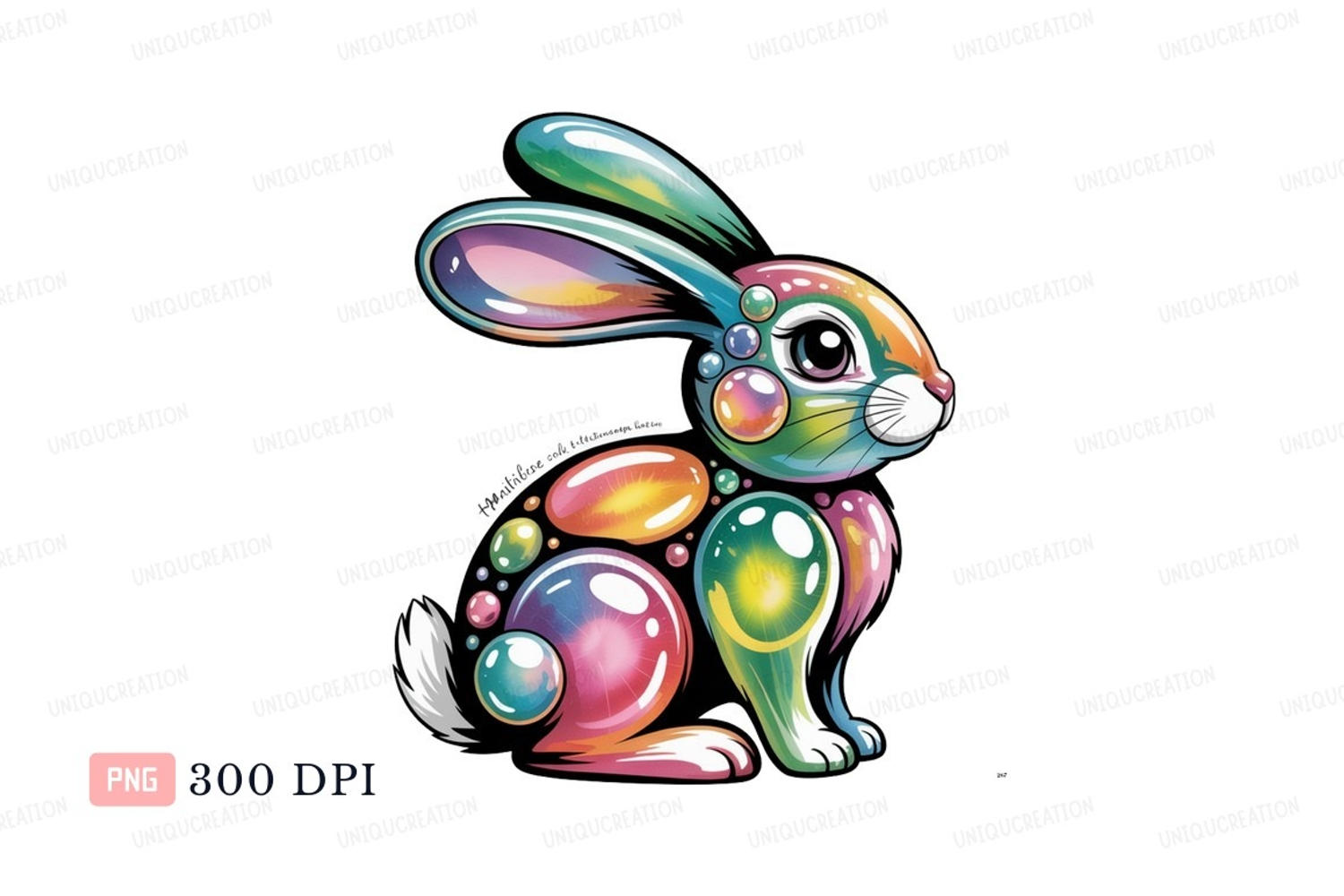 Colorful rabbit with bubble accents bunny rainbow example image 1