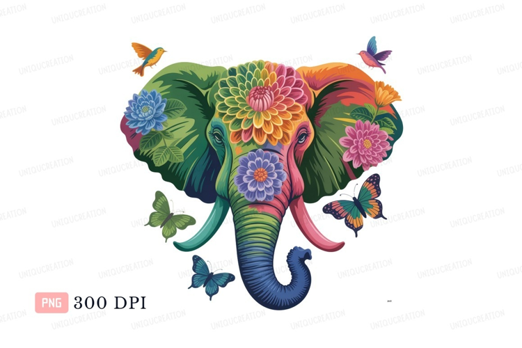 Similar Design Products to Colorful elephant adorned with flowers and butterflies