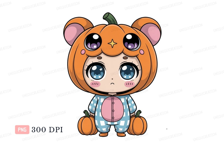 Cute pumpkin character with big eyes costume kawaii example image 1