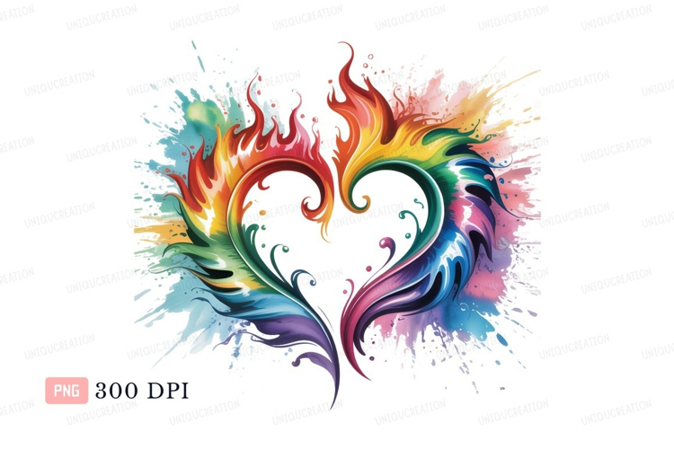 Rainbow heart flames splash paint example image 1