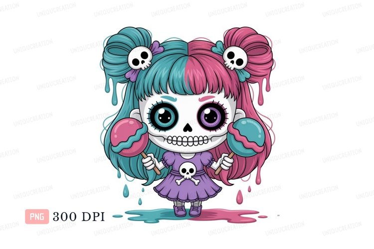 Cute skull girl with colorful hair and candy maracas example image 1