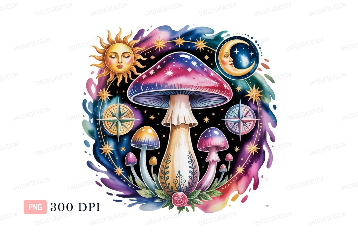 Psychedelic mushrooms celestial sun moon compass image example image 1