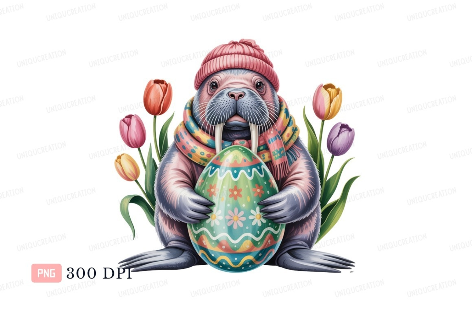 Similar Design Products to Walrus holding easter egg with tulips pink