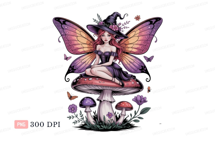Similar Design Products to Fairy witch sitting on mushroom wings purple