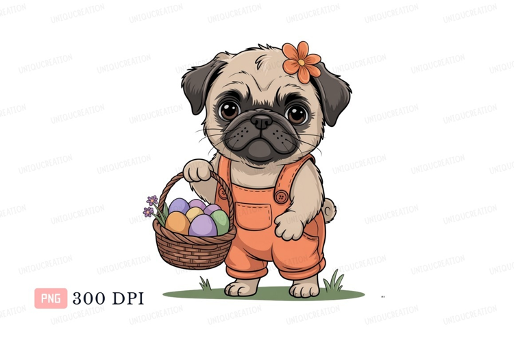 Cute Easter Eggs Flower Orange Puppy Overalls Dog Basket Pug