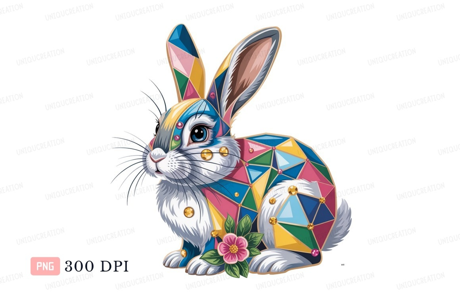 Similar Design Products to Geometric rabbit with colorful facets and flower image