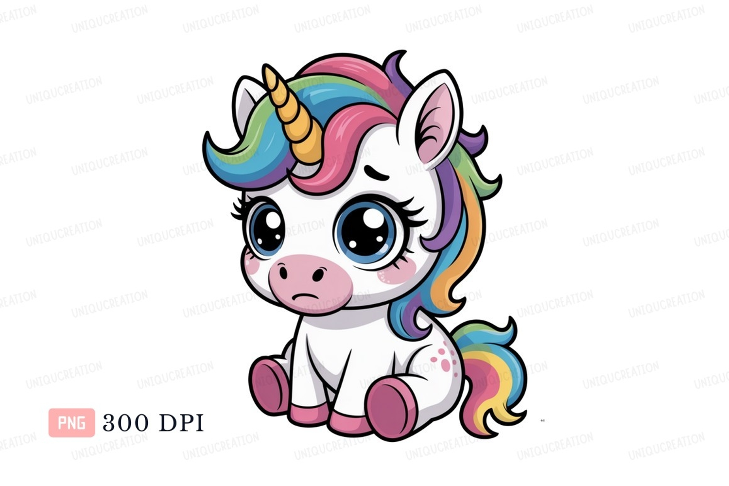 Sad Rainbow Unicorn Clipart P N G mane horn example image 1