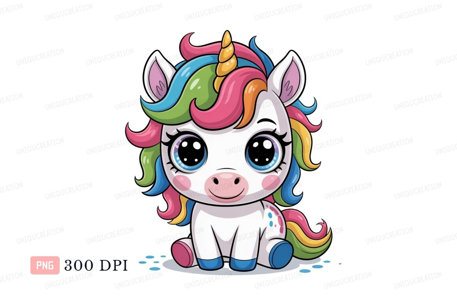 Cartoon Animal Fantasy Cute Horn Unicorn Creature Rainbow Mane Mythical
