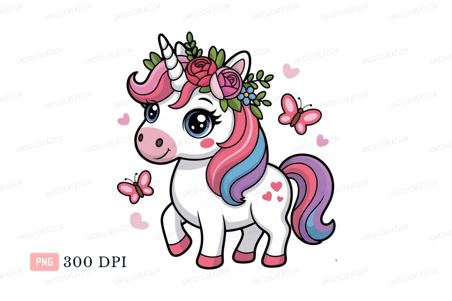 Cute unicorn with flowers and butterflies fantasy magic example image 1