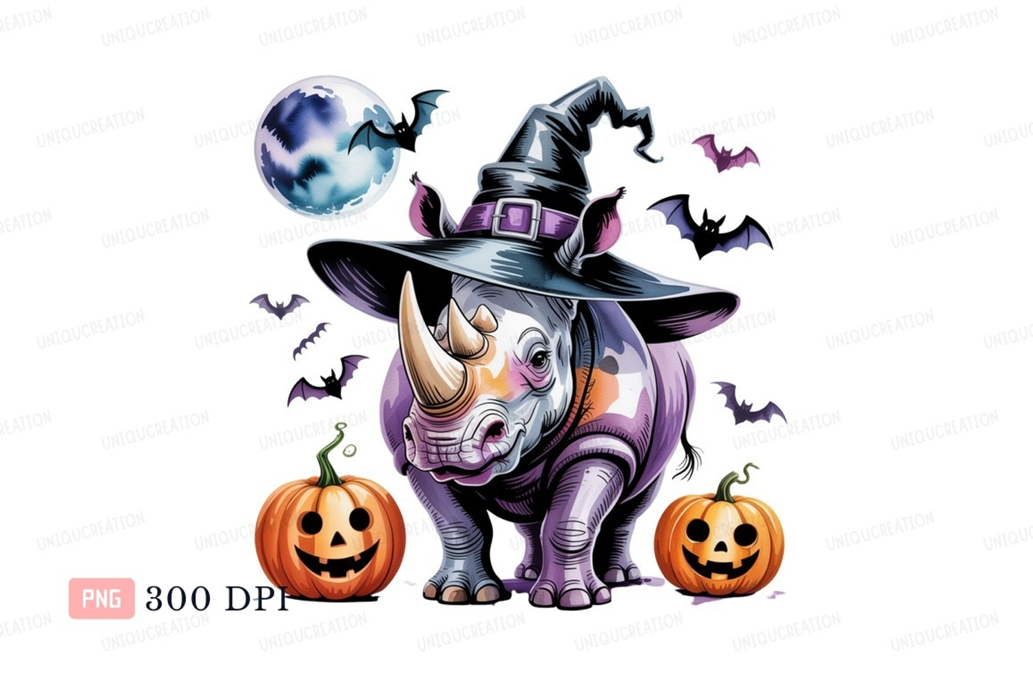 Halloween rhino witch moon bats pumpkins image example image 1