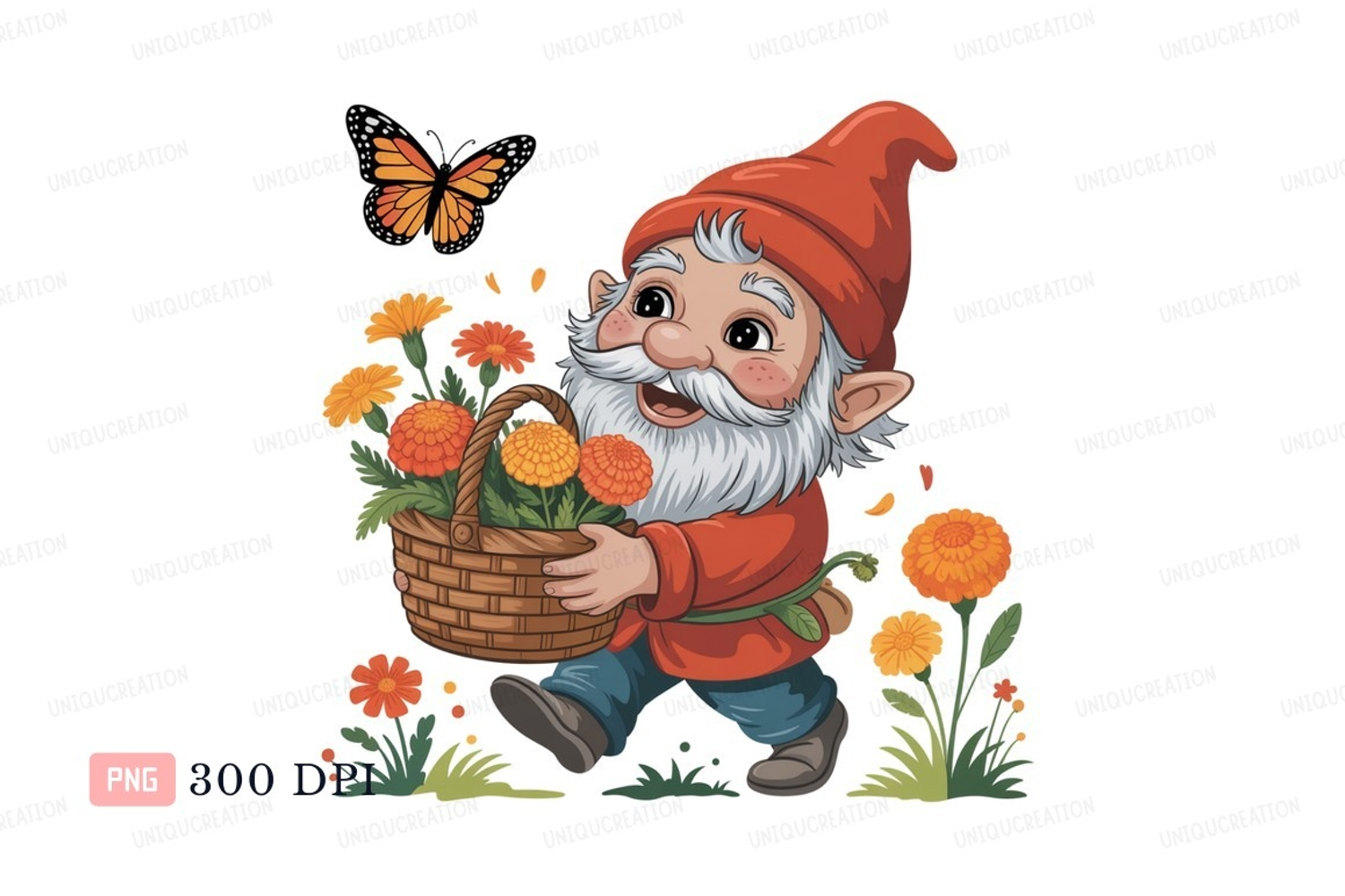 Gnome Daffodil Springtime Clipart P N G flower Cheerful gnom example image 1