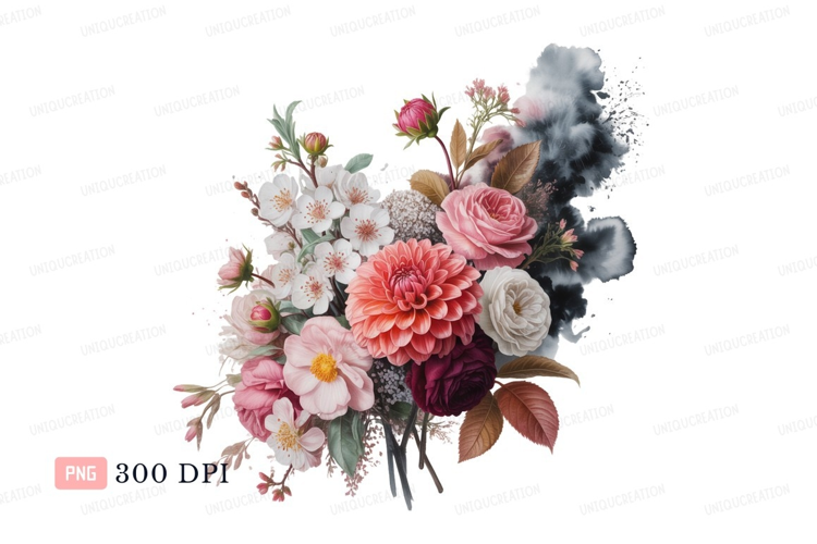 Similar Design Products to Pink coral white floral bouquet watercolor splash image