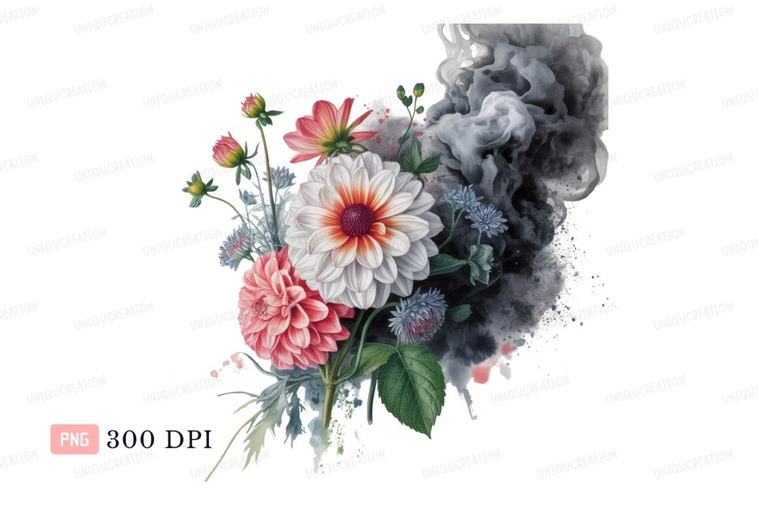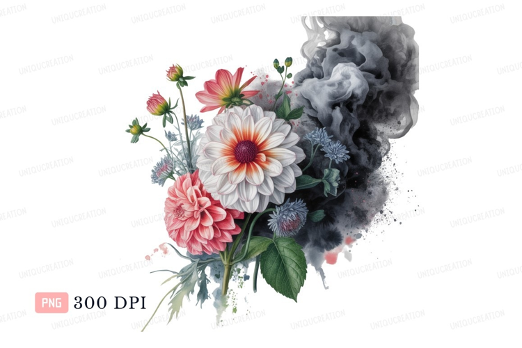 Similar Design Products to White pink dahlias smoke effect flowers orange
