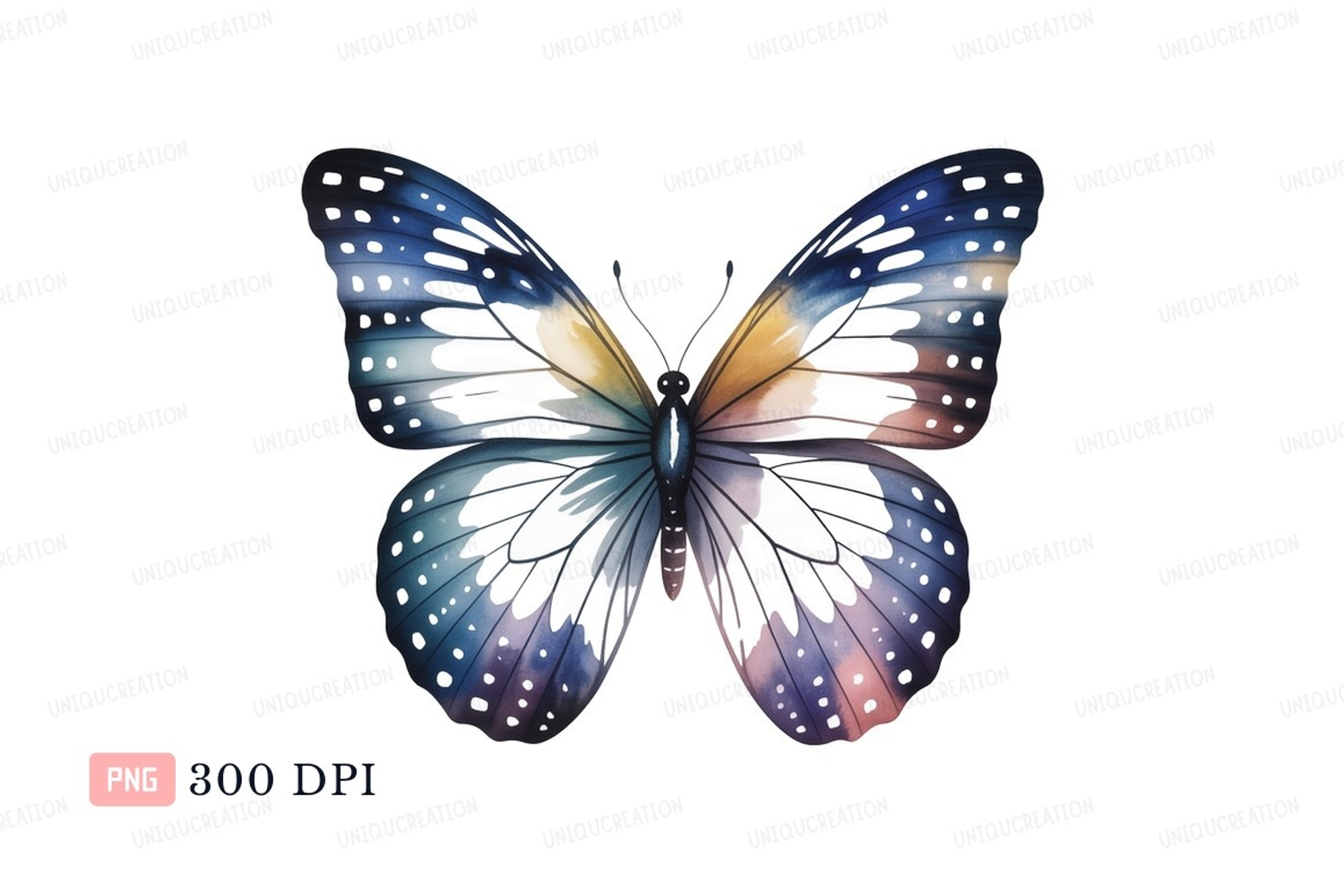 Watercolor butterfly blue yellow purple insect wings example image 1