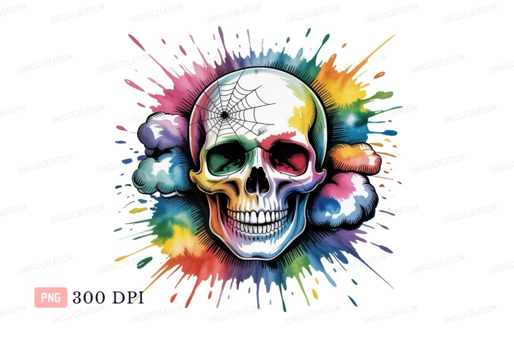 Similar Design Products to Rainbow skull spiderweb watercolor splash image