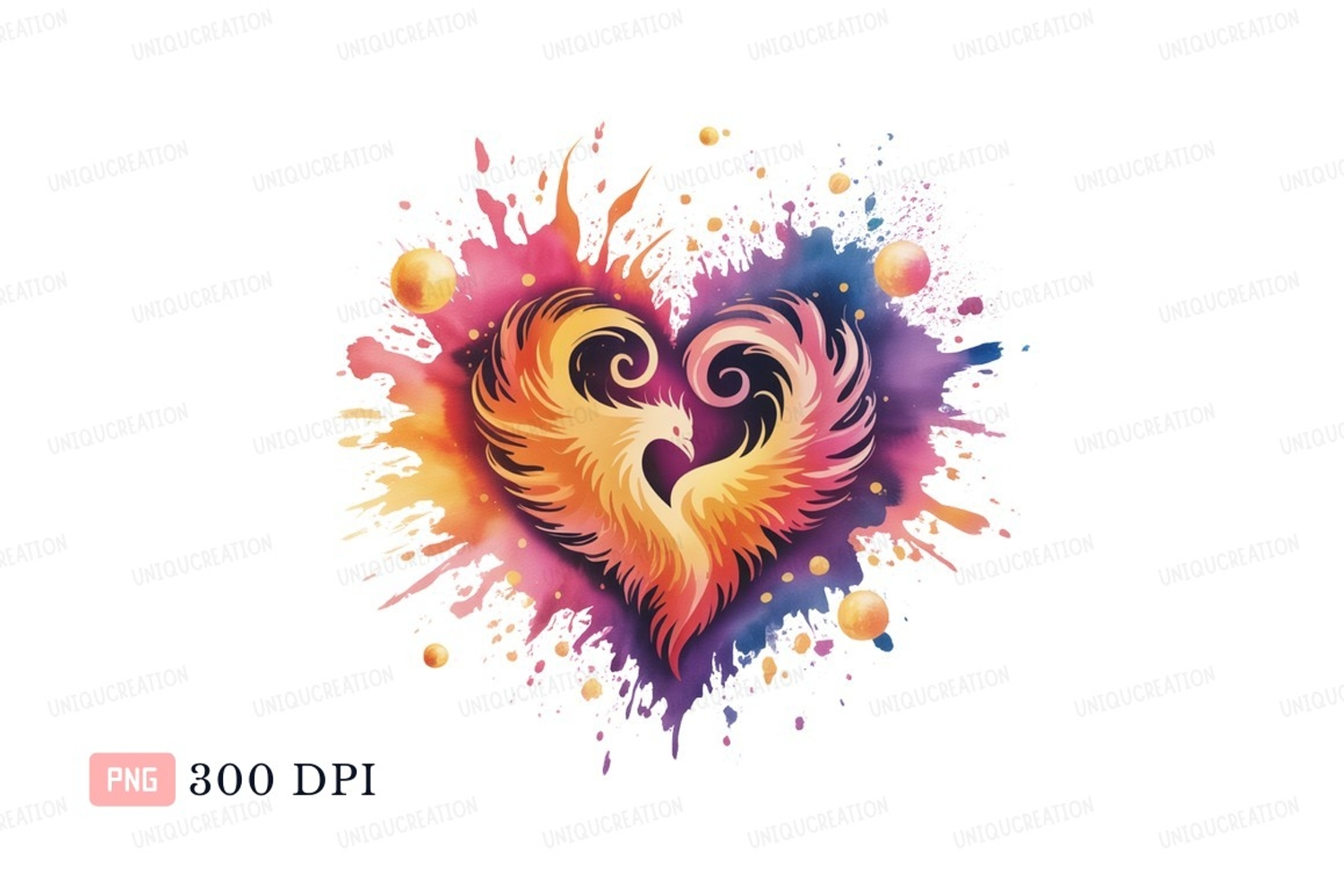 Watercolor Pink Heart Splash Purple Orange Blue Vibrant Fire Phoenix