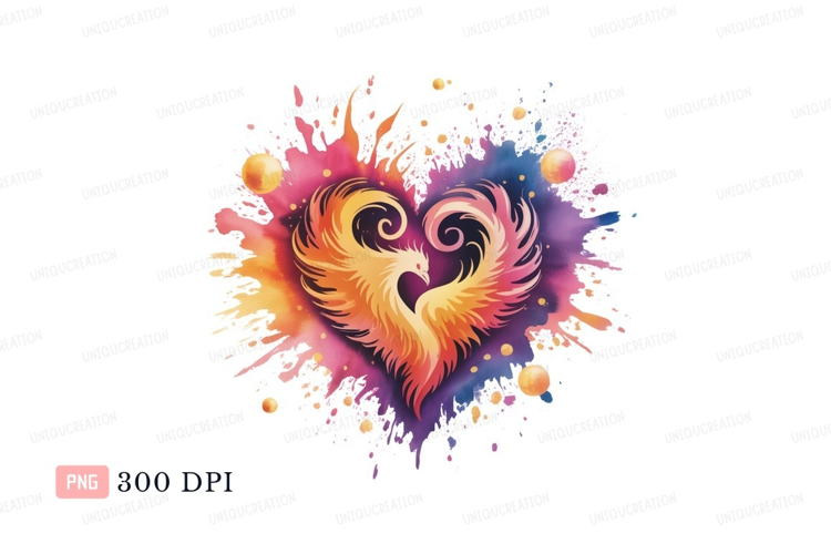 Fiery heart phoenix splash fire watercolor example image 1
