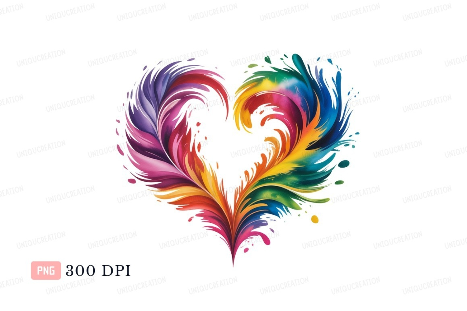Colorful heart splash Clipart P N G paint abstract example image 1