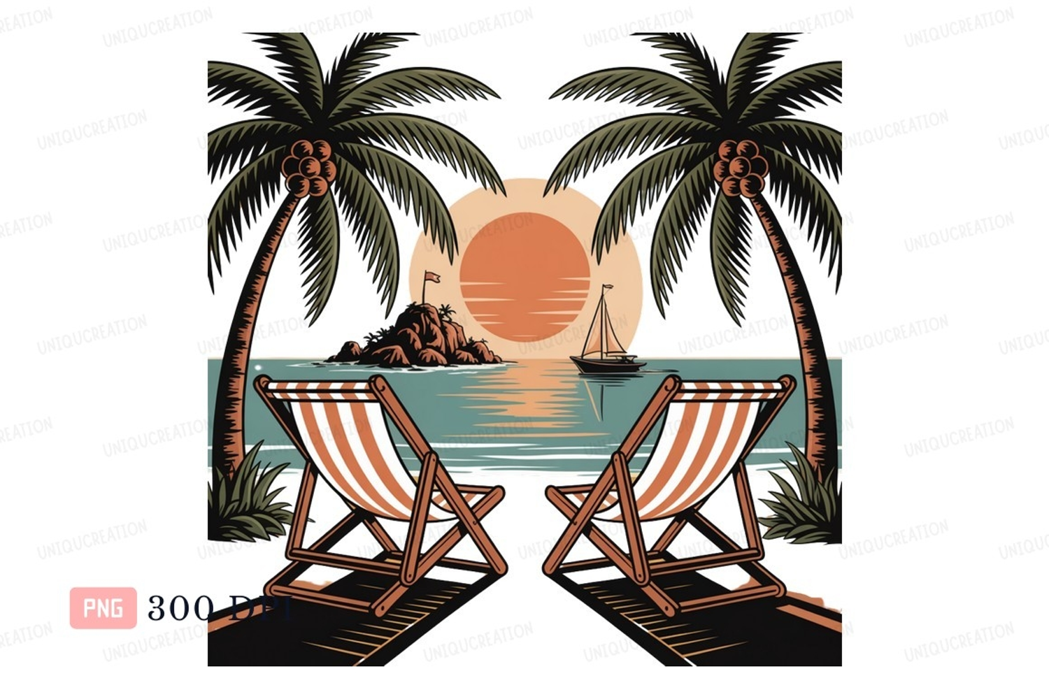 Similar Design Products to Tropical beach chairs sunset ocean view palm