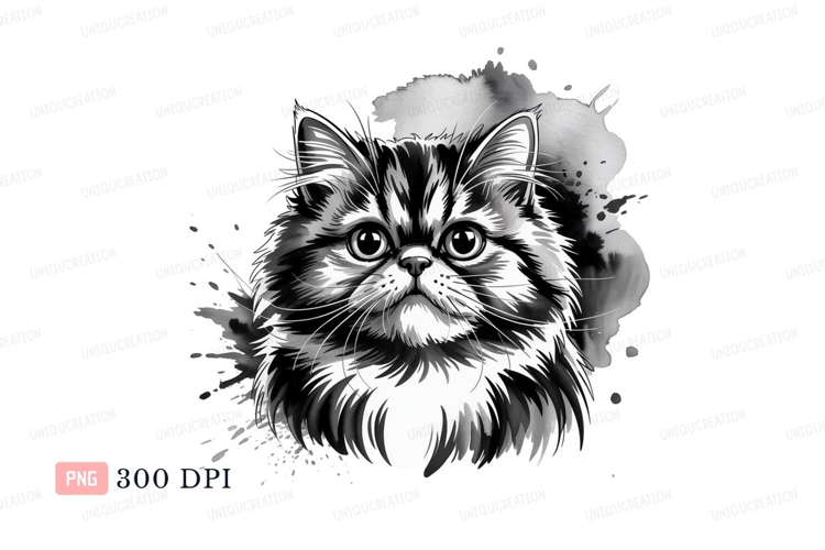 Watercolor Animal Black Splash Cat White Pet Feline Fluffy Longhair