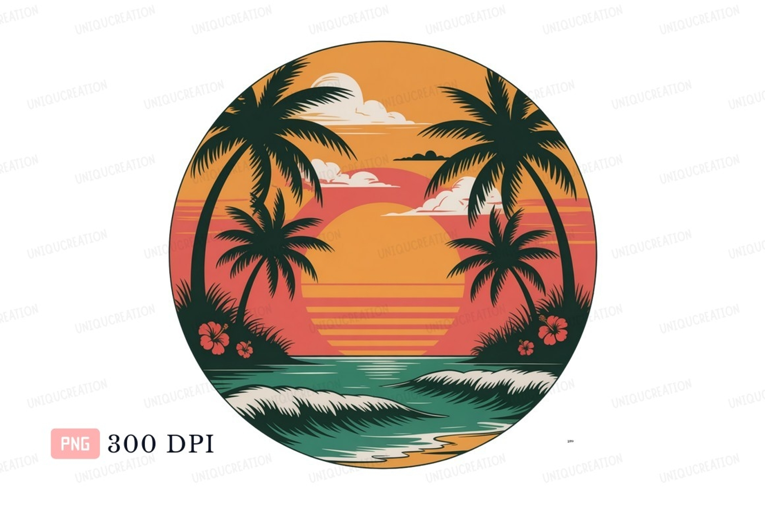 Similar Design Products to Tropical sunset beach palm trees ocean waves image