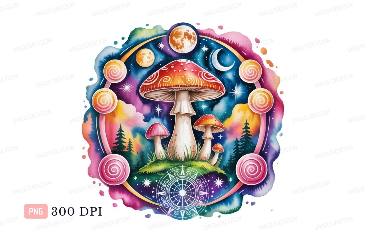 Psychedelic mushroom celestial scene fantasy nature example image 1