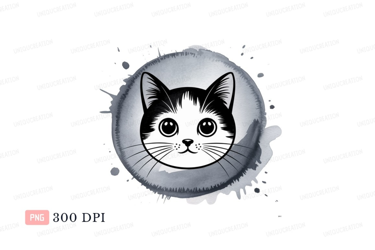 Ink Watercolor Black Splash Face Cat White Eyes Feline Whiskers