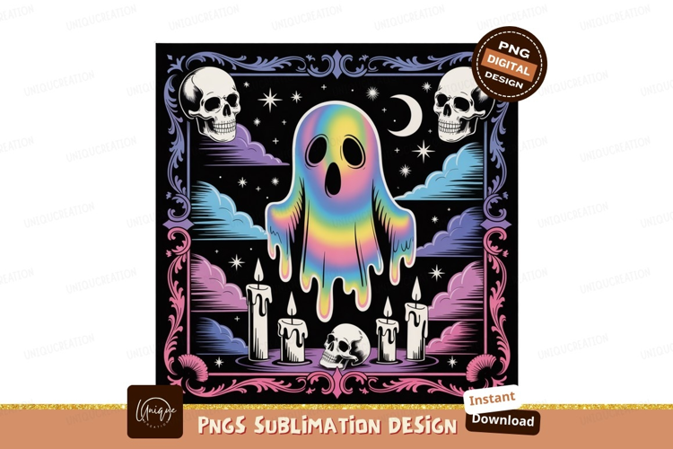Similar Design Products to Colorful ghost with skulls and candles night moon