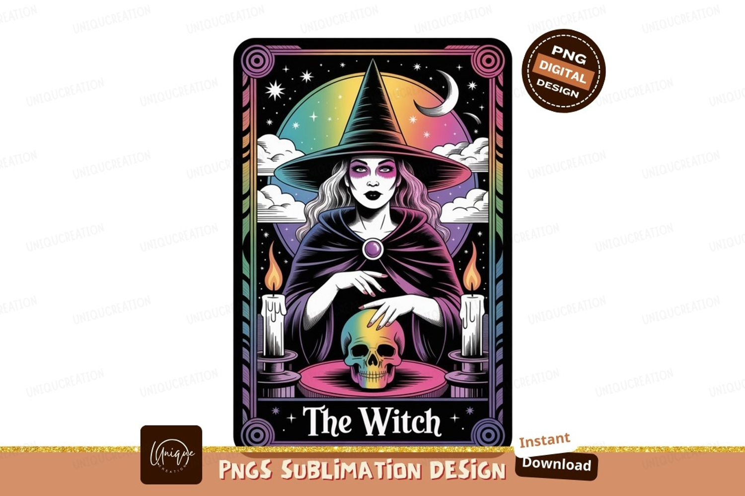 Mystical woman adorned with hat and cloak witch skull example image 1