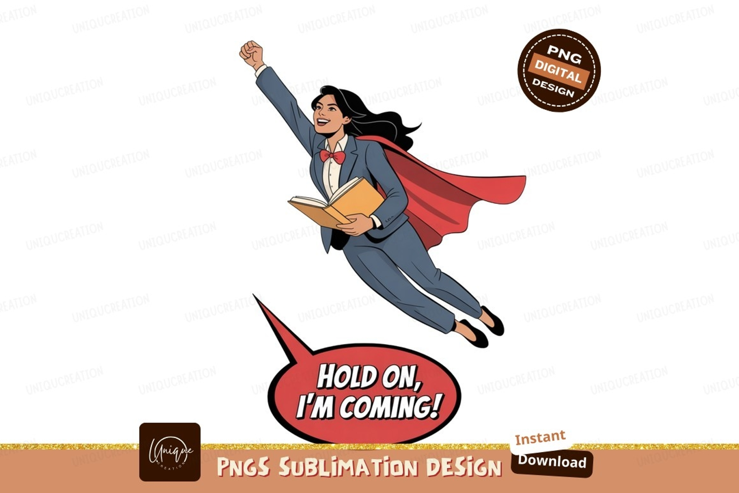 Similar Design Products to Flying woman in suit holding book cape