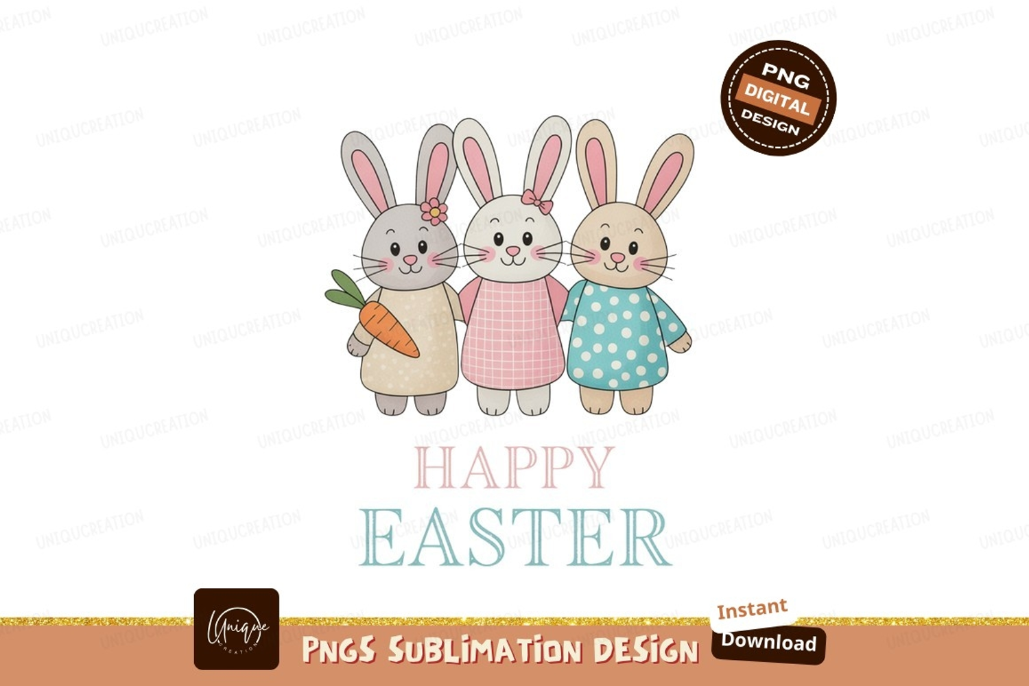 Similar Design Products to Three cute bunnies holding carrot and wearing dresses