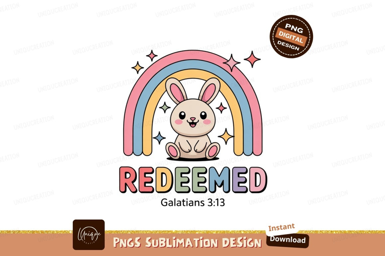 Cute bunny rainbow sublimation rabbit stars example image 1