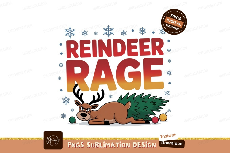 Angry reindeer dragging Christmas tree rage example image 1