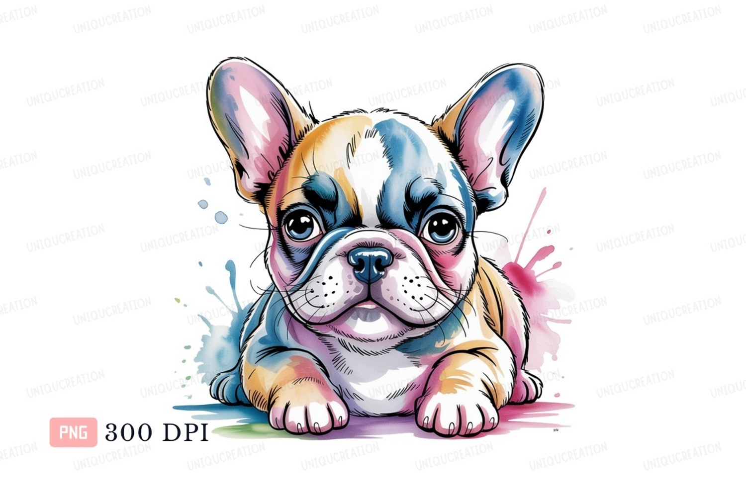 Colorful French Bulldog Watercolor Splash puppy example image 1