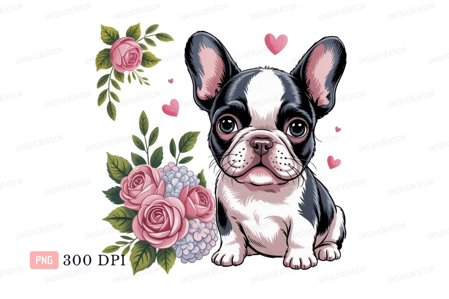 Similar Design Products to French bulldog with pink roses and hearts puppy
