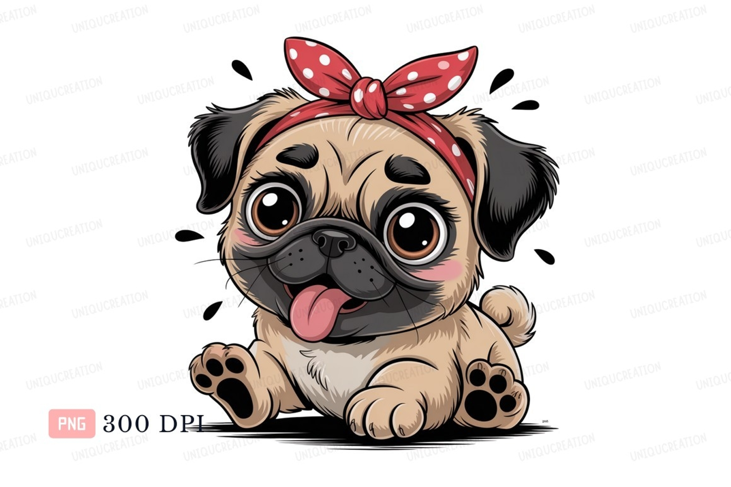 Similar Design Products to Cute pug wearing red polka dot bandana puppy