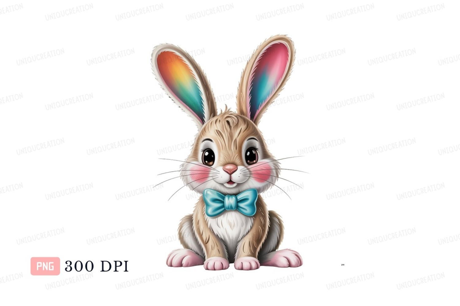Cute bunny with rainbow ears and bow tie rabbit animal example image 1