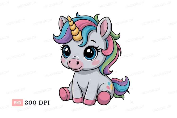 Adorable unicorn with rainbow mane and horn fantasy example image 1