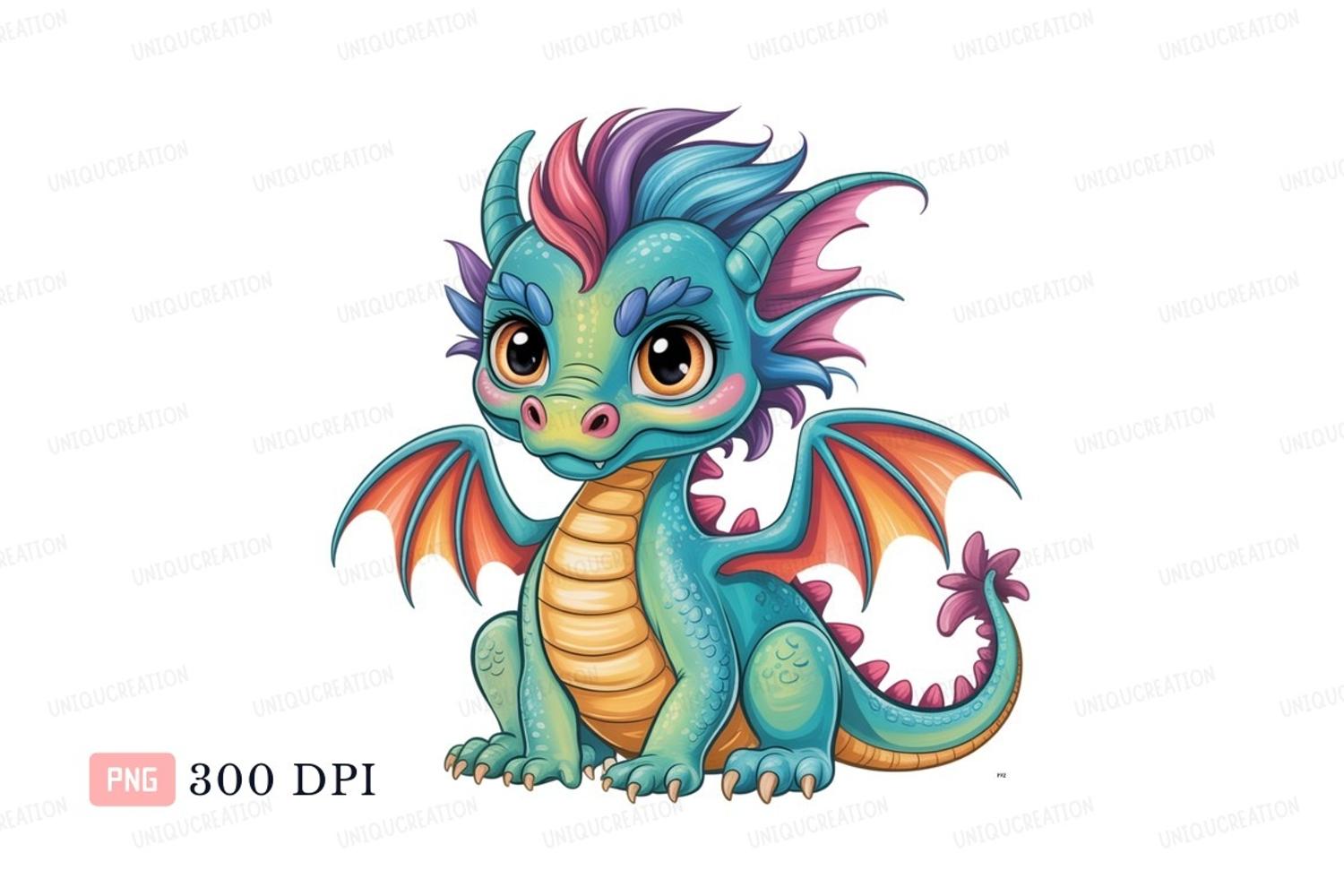 Cute baby dragon with colorful mane fantasy mythical example image 1