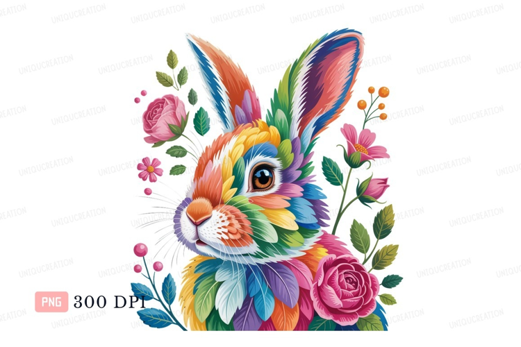 Colorful bunny surrounded by flowers rabbit pink example image 1