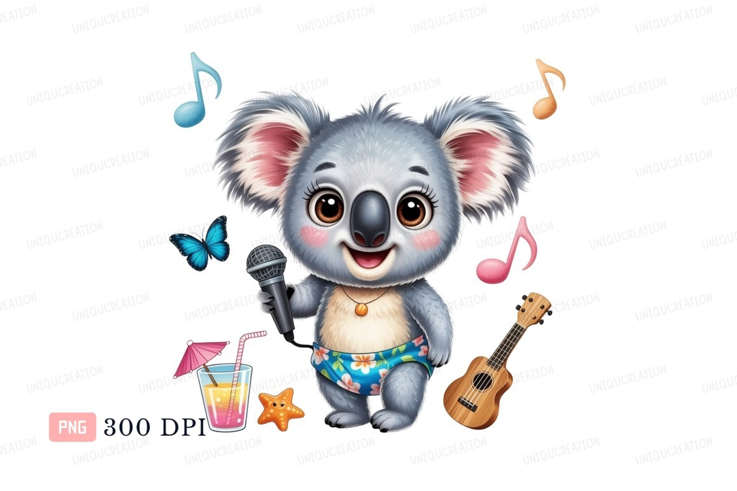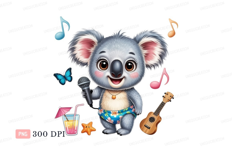 Cartoon Cute Music Notes Drink Butterfly Koala Starfish Singing Ukulele