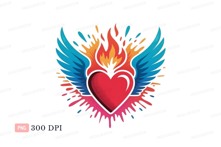 Similar Design Products to Flaming winged heart with splashes wings flame