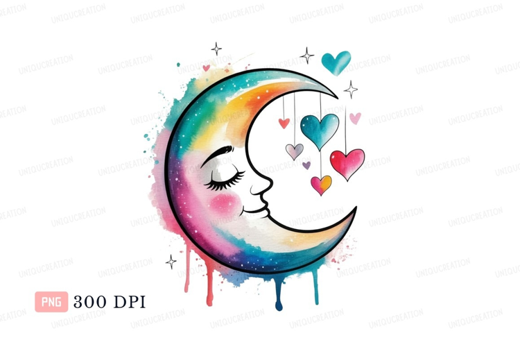 Watercolor Hearts Colorful Splash Face Moon Rainbow Profile Hanging Crescent