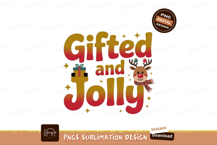 Gifted Jolly Reindeer Christmas Text holiday example image 1
