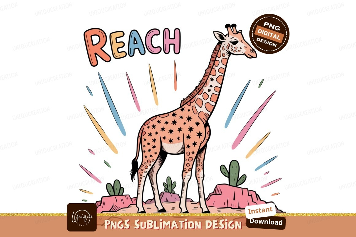 Similar Design Products to Giraffe reaching for stars desert cactus
